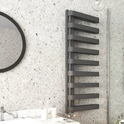 The classic Arezzo square tubed brushed brass heated towel rail is ideal for give your home the latest look in elegant contemporary design. With a straight profile and finished in a eye-catching, brushed brass finish this luxury stylish ladder type towel rail brings a real quality finish to any bathroom. Perfect for keeping your towels toasty and warm as well as creating a focal point in your bathroom. Features 12 square cross rails.