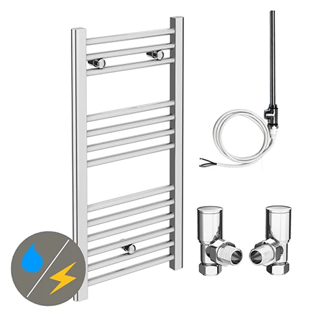 - Fits any 1/2″ BSP wet system towel warmer to give heating on demand when the central heating system is off.