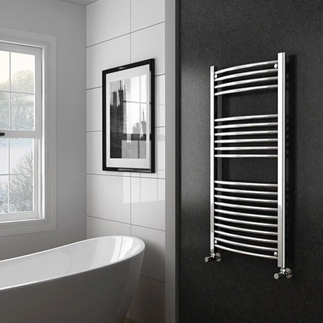 Enhance your bathroom’s functionality with the Diamond Curved Heated Towel Rail. Able to dry towels or warm a favourite robe while also heating your space, this towel rail radiator is a must have for a practical family bathroom. The modern towel rail has a slightly curved profile, making it easier to get your towels and face cloths on and off the rails. It has a width of 600mm β a good fit for small or medium sized wash spaces. The rail’s durable steel structure and lasting polished chrome finish speak to its high quality construction and contemporary influences.