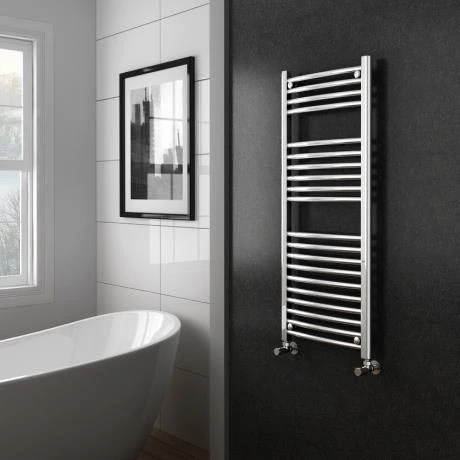 Updating your wash space? Finished in polished chrome, the Diamond Curved Heated Towel Rail is sure to bring a modern edge to your bathroom. This 500mm wide towel rail radiator has a gently curved profile, making it easy to slot in your towels and face cloths. The modern towel rail comes with a fixing kit, plugs and vents so it’s straightforward to fit and installs to your plumbing system allowing you to control the temperature centrally. The fixture is made from robust steel β a material that’s known for its durability, even in damp environments.