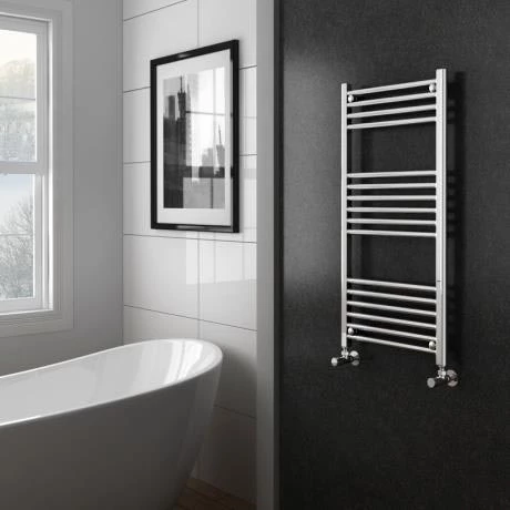 Dry towels efficiently and keep your bathroom warm with this smart Diamond Heated Towel Rail. Finished in highly polished chrome, this 500mm wide ladder towel radiator brings a luxurious sparkle to your bathroom or en suite. The superior quality rail will fit comfortably against the wall thanks to its straight profile β an effective solution for smaller spaces. Expertly crafted from durable steel, this modern chrome ladder radiator is made to last. It even comes with a handy fixing kit for stress free installation.
