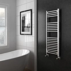 A quality modern 22mm tube diameter standard 500mm wide towel rail with a straight profile, finished in a classic brilliant ice white finish this luxury stylish towel rail brings a real quality finish to your bathroom. Comes with a 5 year guarantee against manufacturing defects.