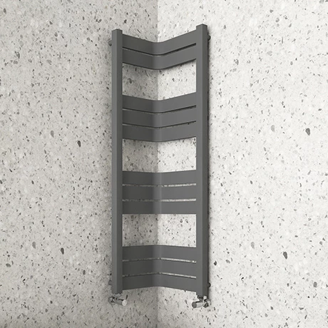 The innovative Milan 1200mm matt anthracite corner heated towel rail will create a sleek, minimal look in your space while keeping your towels toasty warm. This wall-mounted, corner ladder-style towel radiator is a clever space-saving choice for cloakrooms and en-suites.