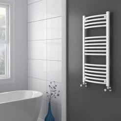 Deals π Diamond Curved Heated Towel Rail – W500 x H1000mm – White βοΈ