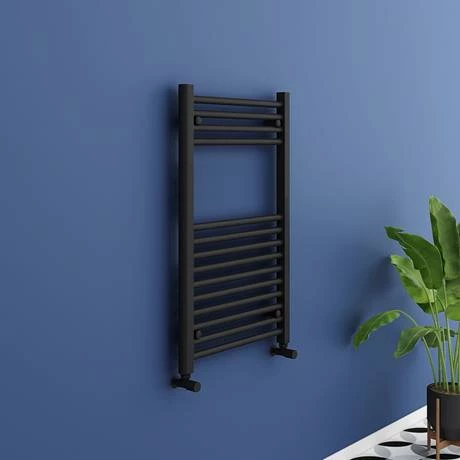 This Toreno Black Heated Towel Rail is designed with luxury in mind and makes a striking addition to your bathroom. The space saving 500mm wide rail is crafted from durable steel with a matt black finish. This ladder radiator will feel indispensable when it’s warming towels ahead of a soothing soak or supercharged shower β it’ll dry them off in a jiffy afterwards too. Supplied with fixing kit, plugs and vents, you’ll have everything you need to install this statement ladder towel radiator in no time at all.